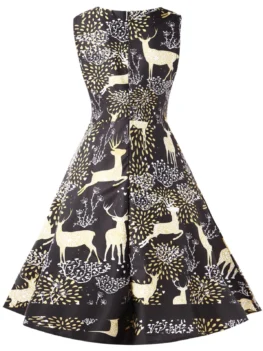 Style: Vintage Material: Polyester,Polyurethane Silhouette: A-Line Dresses Length: Knee-Length Neckline: Round Collar Sleeve Length: Sleeveless Pattern Type: Print With Belt: No Season: Fall,Spring Weight: 0.2500kg Package Contents: 1 x Dress