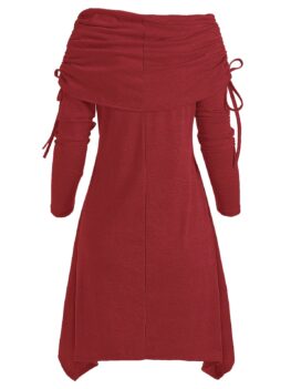 • Christmas Santa Claus Foldover Off Shoulder Asymmetrical Dress