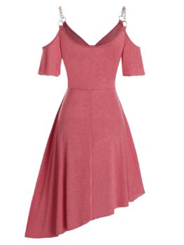 • Chain Strap Cold Shoulder Draped Asymmetric Dress