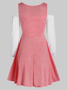 Cold Shoulder Contrast Faux Twinset Dress