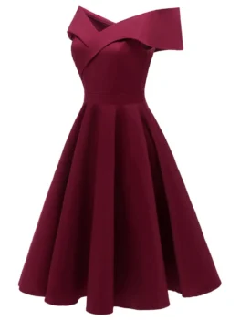 Style: Vintage Material: Cotton,Spandex Silhouette: A-Line Dress Type: Skater Dress Dresses Length: Knee-Length Neckline: Off The Shoulder Sleeve Length: Short Sleeves Pattern Type: Solid With Belt: No Season: Fall,Spring Weight: 0.3370kg Package Contents: 1 x Dress