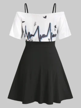• Graphic Off Shoulder Top and Cami Dress Twinset