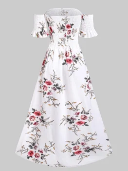 Flower Off Shoulder Smocked Tulip Dress