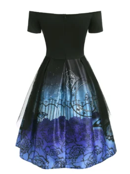 Style: Vintage Occasion: Cocktail & Party,Holiday Material: Polyester Silhouette: A-Line Dresses Length: Knee-Length Neckline: Off The Shoulder Sleeve Length: Long Sleeves Pattern Type: Bat,Dinosaurs,Moon,Pumpkin With Belt: No Season: Fall Weight: 0.4000kg Package Contents: 1 x Dress