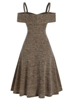 • Cold Shoulder Twist Front Heathered Ribbed Dress