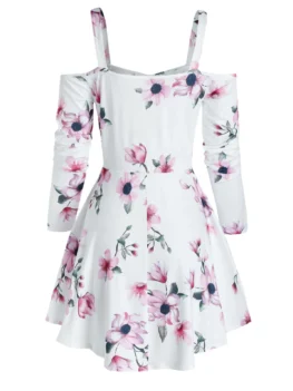 • Floral Print Bowknot Cold Shoulder Dress