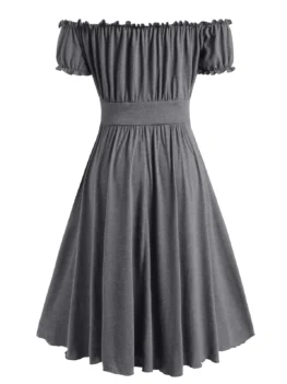 Style: Fashion Material: Polyester,Polyurethane Silhouette: A-Line Dresses Length: Knee-Length Neckline: Off The Shoulder Sleeve Length: Short Sleeves Waist: High Waisted Pattern Type: Skeleton With Belt: No Season: Fall,Summer Weight: 0.3400kg Package Contents: 1 x Dress