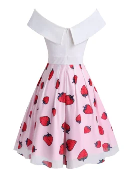 Wanna lovely strawberry dress? This one is suitable for you! The foldover off-shoulder neckline is elegant, and thus forming chic short sleeves. And the skirt part has a mesh overlay where the fruit you want exactly placed. Style: Fashion Material: Polyester,Polyurethane Silhouette: A-Line Dresses Length: Knee-Length Neckline: Off The Shoulder Sleeve Length: Short Sleeves Embellishment: Mesh Pattern Type: Strawberry With Belt: No Season: Fall,Spring,Summer…