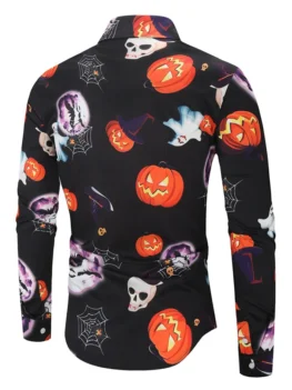 This shirt is featuring pumpkin, skull, ghost and spider print, long sleeves with adjustable buttoning at cuffs, a turn-down collar, and hidden front button closure. The creative and unique pattern makes the shirt not boring anymore and will give you a cool and fantastic look, instantly taking you to a Halloween vacation state of mind….
