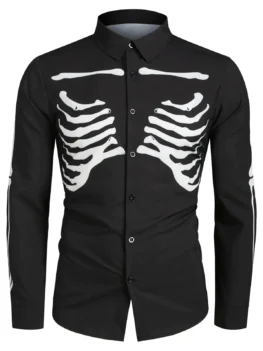 Shirts Type: Casual Shirts Style: Casual Material: Polyester,Polyurethane Sleeve Length: Full Collar: Turn-down Collar Pattern Type: Skeleton Season: Fall,Spring Weight: 0.2400kg Package Contents: 1 x Shirt