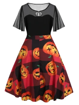 Style: Vintage Material: Polyester Silhouette: A-Line Dresses Length: Knee-Length Neckline: Round Collar Sleeve Length: Half Sleeves Pattern Type: Pumpkin With Belt: No Season: Fall,Summer Weight: 0.2800kg Package Contents: 1 x Dress
