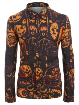 Shirts Type: Casual Shirts Material: Polyester Sleeve Length: Full Collar: Turn-down Collar Pattern Type: Animal,Pumpkin,Skull Season: Fall,Spring Weight: 0.2400kg Package Contents: 1 x Shirt