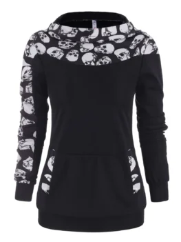 A cool piece, this relaxed fit hoodie features a kangaroo pocket and contrast skull print which is suitable for Halloween days. Pair it with pants to complete this chic look! Material: Polyester,Polyurethane Shirt Length: Regular Sleeve Length: Full Style: Gothic Pattern Style: Skulls Season: Fall,Spring Weight: 0.4300kg Package Contents: 1 x Hoodie