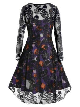The skeleton looks like some kind of inset in this layering tulle dress implies the scary Halloween day is just around the corner. Thin shoulder straps allow you to adjust to the perfect fit. Style: Gothic Material: Polyester Silhouette: A-Line Dresses Length: Mini Neckline: Spaghetti Strap Sleeve Length: Sleeveless Waist: High Waisted Embellishment: Backless Pattern Type: Skeleton With Belt: No