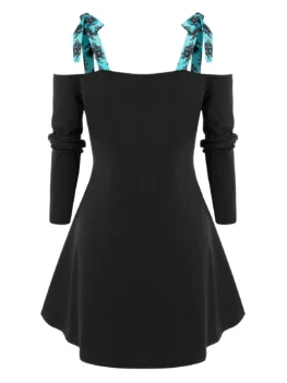 Style: Fashion Material: Polyester Shirt Length: Long Collar: Square Neck Sleeve Length: Full Sleeve Type: Cold Shoulder Embellishment: Ties Pattern Type: Butterfly,Floral,Skeleton Season: Fall Weight: 0.2850kg Package Contents: 1 x Tee