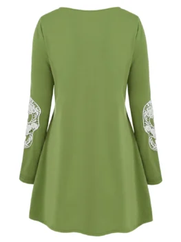 Style: Fashion Material: Polyester,Polyurethane Shirt Length: Long Collar: Round Neck Sleeve Length: Full Embellishment: Lace Pattern Type: Others Season: Fall,Spring Weight: 0.3100kg Package Contents: 1 x T Shirt