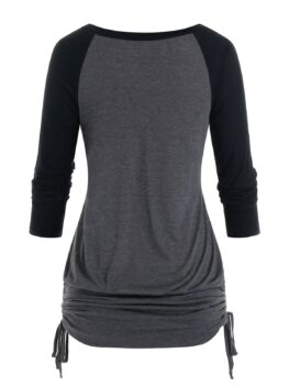 Style: Fashion Material: Polyester,Rayon Shirt Length: Long Collar: Round Neck Sleeve Length: Full Embellishment: Ruched,Ties Pattern Type: Skulls Fabric Stretch: Slight Stretch Season: Fall,Winter Weight: 0.2860kg Package Contents: 1 x Tee