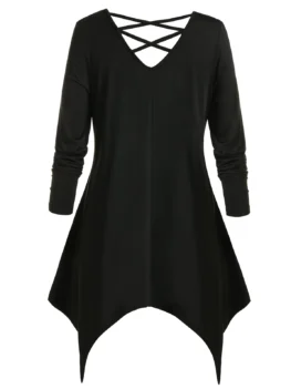 • Plus Size Skull Moon And Sun Long Sleeve Handkerchief Tee