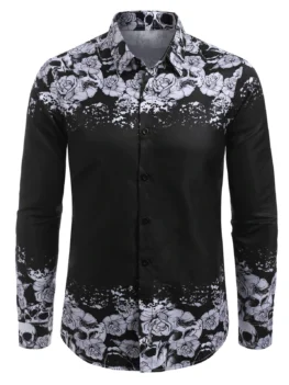 Shirts Type: Casual Shirts Material: Polyester Sleeve Length: Full Collar: Turn-down Collar Pattern Type: Floral,Skull Season: Fall,Spring Weight: 0.2600kg Package Contents: 1 x Shirt