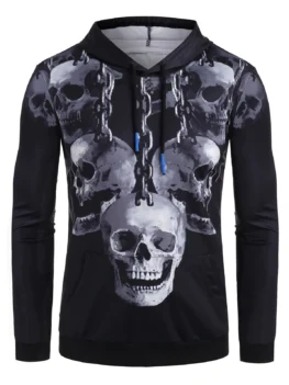 • SKull Chain Print Kangaroo Pocket Hoodie