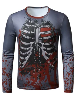 • Halloween 3D Skeleton Print Crew Neck Slim T Shirt