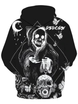 Clothes Type: Hoodie Occasion: Halloween Style: Casual Fit Type: Regular Shirt Length: Regular Sleeve Length: Full Material: Cotton,Polyester Thickness: Regular Closure Type: Zipper Patterns: Skulls Season: Fall Weight: 0.3800kg Package Contents: 1 x Hoodie