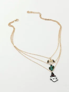 • Halloween Cactus Ghost Bat Layers Necklace