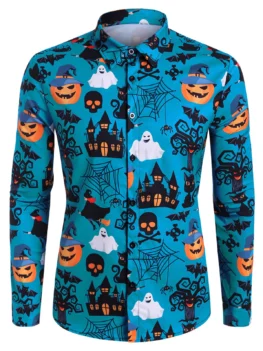 Shirts Type: Casual Shirts Style: Casual Material: Polyester,Polyurethane Sleeve Length: Full Collar: Turndown Collar Pattern Type: Animal,Pumpkin Season: Fall,Spring Weight: 0.2200kg Package Contents: 1 x Shirt