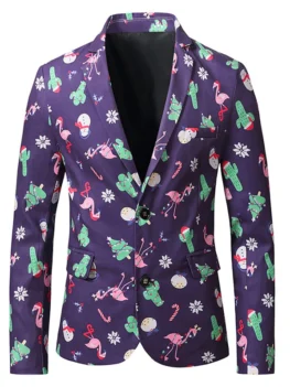 • Christmas Tree Snowman Flamingo Print Lapel Back Slit Blazer