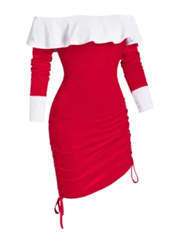 Style: Fashion Occasion: Casual ,Christmas,Cocktail & Party Material: Polyester Silhouette: Bodycon Dresses Length: Mini Neckline: Off The Shoulder Sleeve Length: Long Sleeves Embellishment: Ruffles Pattern Type: Colorblock With Belt: No Season: Winter Weight: 0.2950kg Package Contents: 1 x Dress