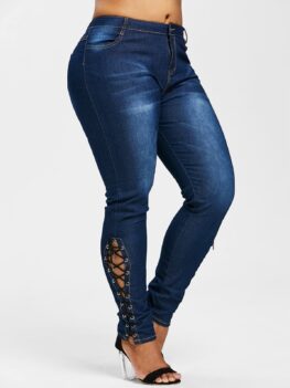 No matter what your style is, you'll need a denim that makes you feel confident. These straight jeans feature a high waist, side lace-up design for easy put-on. These medium-wash skinny jeans will become a quick favorite in your year-round wardrobe. Style: Fashion Length: Normal Material: Cotton,Polyester,Polyurethane,Viscose Fit Type: Skinny Waist Type: High Closure Type: Zipper Fly Pattern Type: Others Pant…