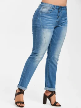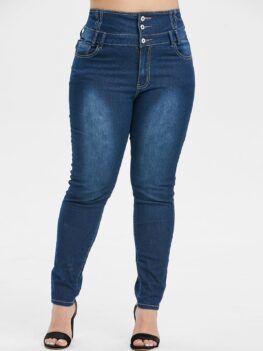 An exposed button fly and high waist design give edgy style to these skinny jeans. Style: Fashion Length: Normal Material: Cotton,Polyester,Spandex,Viscose Fit Type: Skinny Waist Type: High Closure Type: Button Fly Pattern Type: Solid Pant Style: Pencil Pants Weight: 0.5770kg Package Contents: 1 x Jeans
