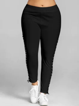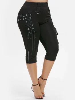 Style: Fashion Length: Capri Material: Polyester,Polyurethane Fit Type: Skinny Waist Type: High Closure Type: Elastic Waist Pattern Type: Solid Embellishment: Lace up,Pockets,Zippers Pant Style: Pencil Pants Elasticity: Elastic Weight: 0.3190kg Package Contents: 1 x Pants