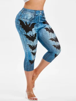 Style: Fashion Length: Capri Material: Polyester,Polyurethane Fit Type: Skinny Waist Type: High Closure Type: Elastic Waist Pattern Type: Bat Embellishment: 3D Print Pant Style: Skinny Elasticity: Elastic Weight: 0.1600kg Package Contents: 1 x Jeggings
