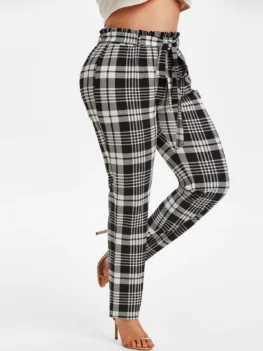 Style: Fashion Length: Normal Material: Polyester,Polyurethane Fit Type: Regular Waist Type: High Closure Type: Elastic Waist Pattern Type: Plaid Pant Style: Pencil Pants Weight: 0.3600kg With Belt: Yes Package Contents: 1 x Pants 1 x Belt