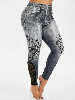 Style: Fashion Length: Normal Material: Polyester,Polyurethane Fit Type: Skinny Waist Type: High Closure Type: Elastic Waist Pattern Type: 3D Print,Skulls Embellishment: Lace Pant Style: Skinny Elasticity: Elastic Weight: 0.2000kg Package Contents: 1 x Jeggings