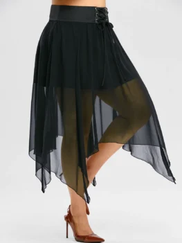 Material: Polyester,Polyurethane Length: Ankle-Length Silhouette: Asymmetrical Pattern Type: Solid Embellishment: Lace up Season: Fall,Spring Weight: 0.3200kg Package Contents: 1 x Skirt
