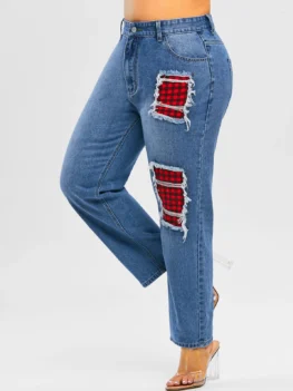 Soft and breathable, this fitted leggings feature an elastic waist for easy to put on, a ripped design at the knee with conspicuous plaid print. We can wear it pair with the letter print tee for sports occasion. Style: Fashion Length: Normal Material: Polyester,Polyurethane Fit Type: Skinny Waist Type: Mid Closure Type: Elastic Waist Pattern Type: Plaid Pant Style: Straight Weight: 0.2990kg Package…