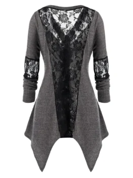 Get refreshed for fall with this plus size cardigan featuring peeks of lace insert. Look amazing this season when you pair this with leggings and a solid top that peeks through. Type: Cardigans Material: Polyester Collar: Collarless Sleeve Length: Full Style: Fashion Season: Fall,Spring Pattern Type: Others Weight: 0.2510kg Package Contents: 1 x Cardigan