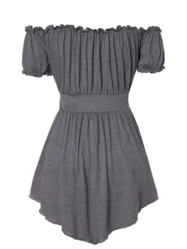 Style: Casual Material: Polyester,Rayon Collar: Off The Shoulder Shirt Length: Long Sleeve Length: Short Embellishment: Lace Pattern Type: Others Season: Spring,Summer Weight: 0.2740kg Package Contents: 1 x T Shirt