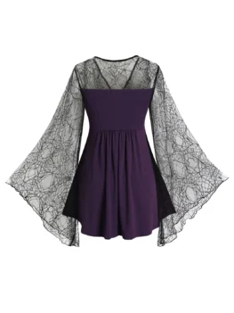 Style: Gothic Material: Polyester,Polyurethane Shirt Length: Long Collar: V-Neck Sleeve Length: Full Sleeve Type: Flare Sleeve Embellishment: Lace,See Thru Pattern Type: Others Season: Fall,Winter Weight: 0.2420kg Package Contents: 1 x Tee
