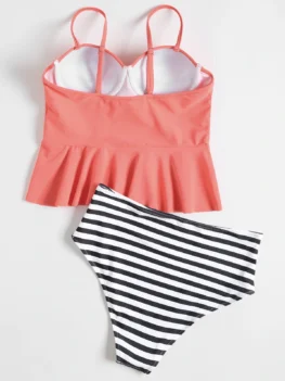 • High Waisted Striped Peplum Tankini Set