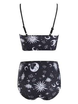 Swimwear Type: Tankini Gender: For Women Material: Polyester,Polyurethane Bra Style: Padded Support Type: Wire Free Neckline: Spaghetti Straps Pattern Type: Moon,Star,Sun Embellishment: Lace up Waist: High Waisted Season: Summer Weight: 0.2700kg Package Contents: 1 x Tankini 1 x Briefs