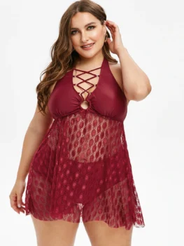 Gender: For Women Swimwear Type: Tankini Material: Polyester,Spandex Bra Style: Padded Support Type: Wire Free Neckline: Halter Pattern Type: Solid Embellishment: Criss-Cross,Lace Waist: Natural Weight: 0.3300kg Package Contents: 1 x Top 1 x Briefs