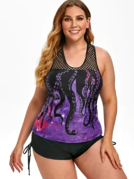 Try octopus print to show your unique fashion style with this tankini swimwear. The tankini top offers a universally flattering fit, fishnet insert, a racerback detail, and padded cups for light support. The matching cinched bottom is mid-waisted. Gender: For Women Swimwear Type: Tankini Material: Polyester,Spandex Bra Style: Padded Support Type: Wire Free Neckline: Scoop Neck Pattern Type: Print Waist: Natural Weight: 0.3600kg…