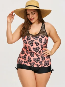 • Plus Size Low Cut Ruffled Floral Print Tankini Swimwear