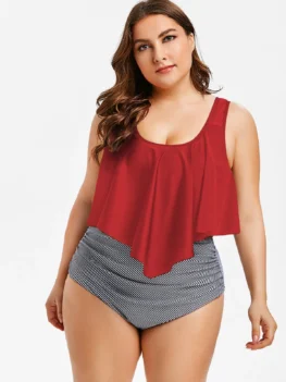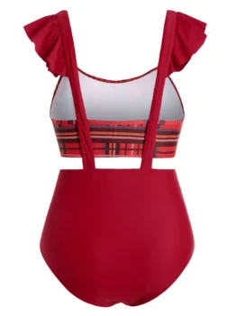 • Plus Size Ruffle Plaid Ruched Tankini Swimwear