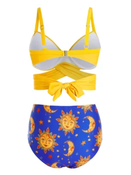 Style: Fashion Swimwear Type: Tankini Gender: For Women Material: Polyester,Polyurethane Bra Style: Padded Support Type: Wire Free Neckline: Straps Pattern Type: Moon,Star,Sun Embellishment: Criss-Cross Waist: High Waisted Elasticity: Elastic Season: Summer Weight: 0.2200kg Package Contents: 1 x Top 1 x Briefs