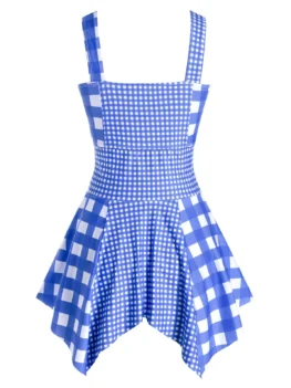 • Plus Size Plaid Twisted Asymmetrical Tankini Swimwear