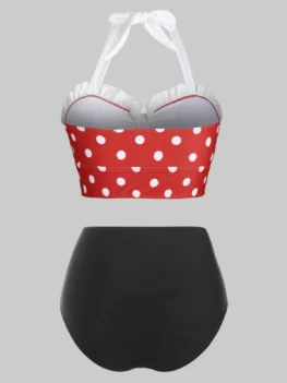 Style: Vintage Swimwear Type: Tankini Gender: For Women Material: Nylon,Spandex Bra Style: Padded Support Type: Wire Free Neckline: Halter Pattern Type: Polka Dot Embellishment: Button,Ruffles Waist: High Waisted Weight: 0.3300kg Package Contents: 1 x Top 1 x Briefs